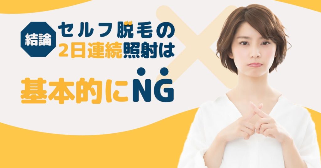 ほぼすべてのセルフ脱毛器(家庭用脱毛器)およびセルフ脱毛サロンの脱毛器において、連日の同一部位への照射は禁止事項として明記されています。