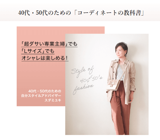 「40代・50代のための『コーディネートの教科書』」は、大人世代のファッション悩みに寄り添うスタイル提案メディア。専業主婦からスタイリストへ転身した実体験をもとに着こなし術やプチプラ活用法を紹介しています。