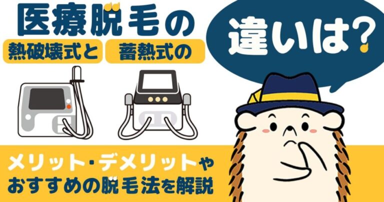 「熱破壊式と蓄熱式の違いは何?」「どちらの方が痛みが少ないの?」このような疑問をお持ちではありませんか? 医療脱毛を選ぶとき、熱破壊式と蓄熱式のどちらが自分に合っているのか知りたいと考えている方が多いでしょう。 熱破壊式 … 続きを読む 医療脱毛の熱破壊式と蓄熱式の違いは?メリット・デメリットやおすすめの脱毛法を解説