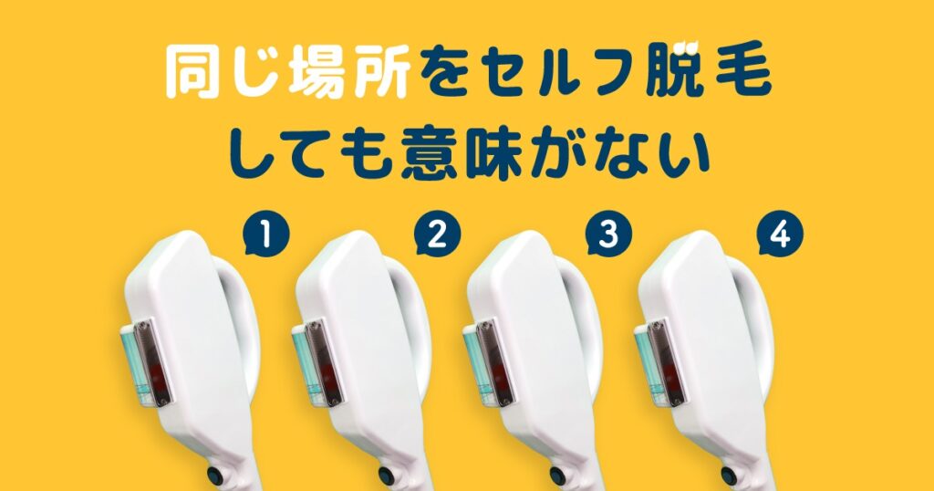 同じ場所をセルフ脱毛しても、脱毛の効果は上がりません。それどころか、無駄に照射可能な回数を消費するため無駄打ちになってしまいます。