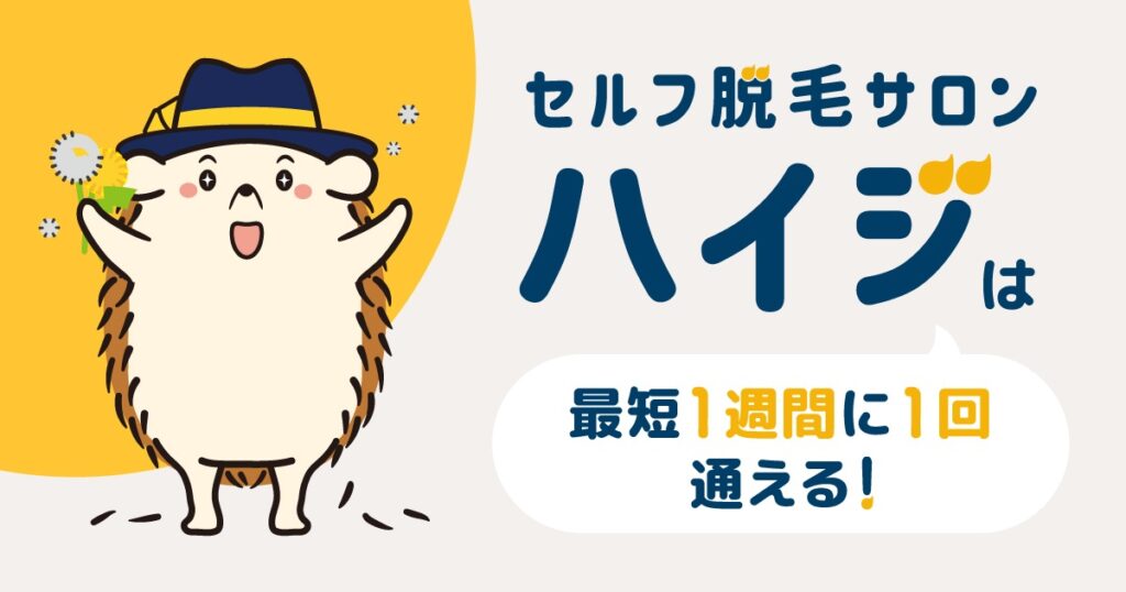 セルフ脱毛サロンハイジは、1週間~10日に1回通えるので、早く脱毛を完了させたい方に向いています。初回は60分1,000円でお試しできますので、ぜひハイジの利用を検討してみてください。