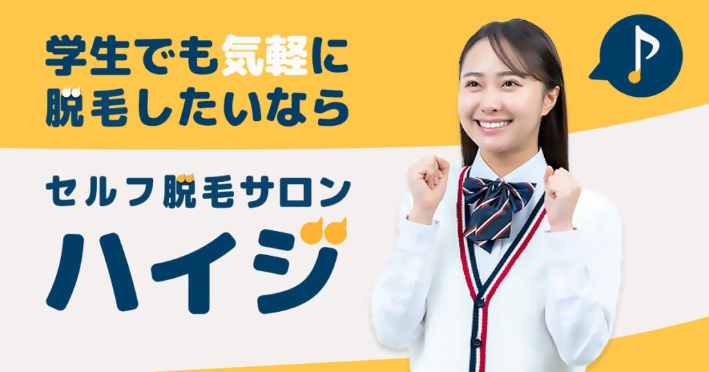 医療脱毛は効果が高い一方で、費用面や通院スケジュールに不安を感じる学生も少なくありません。そのような方におすすめなのが、セルフ脱毛サロンハイジです。