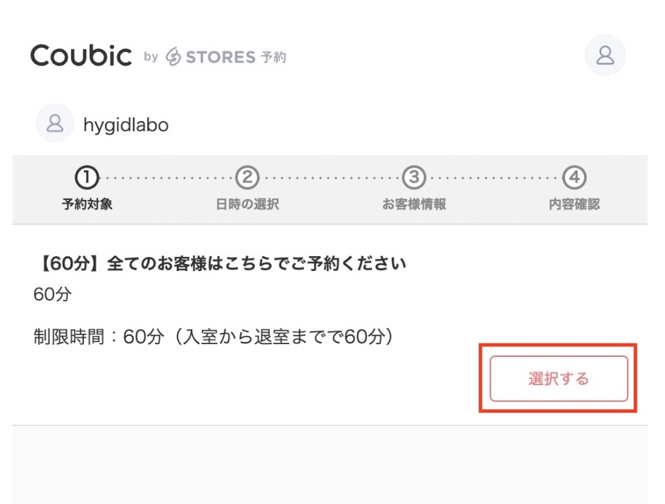 「Coubic」登録完了後、下記ページへアクセスし予約登録