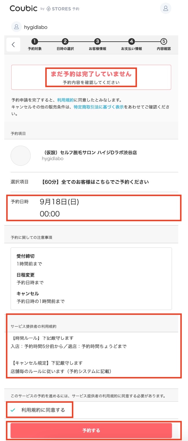 予約はまだ完了していません