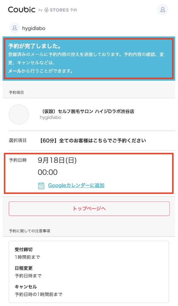 予約完了