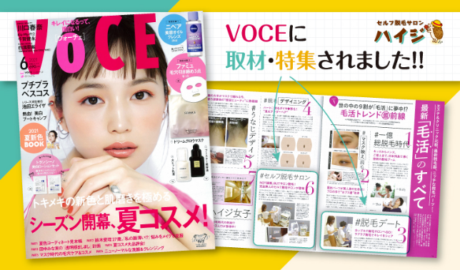 夏に向けての「毛活」という特集で、VOCEライターさんより取材のお申し込みをいただき、このようにご掲載をいただく形となりました。