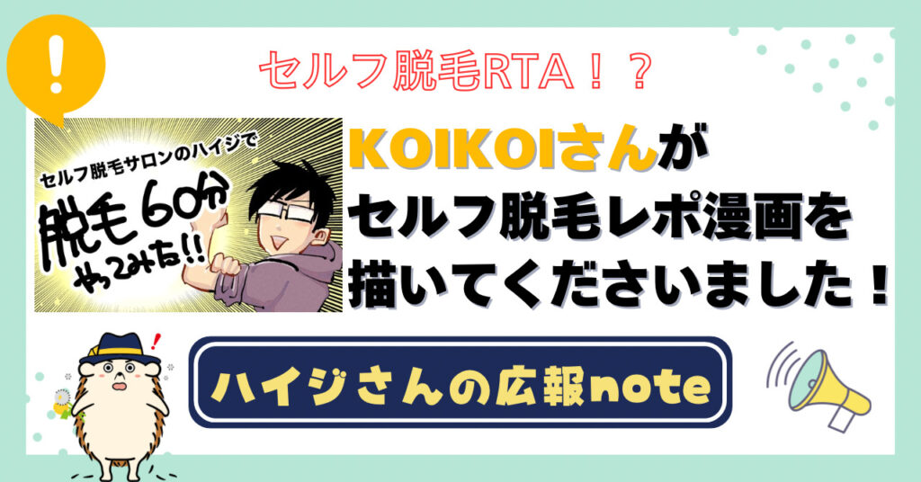 このたび、業務提携中のKOIKOIさんがなんとセルフ脱毛ハイジのレポ漫画を描いてくださいました!